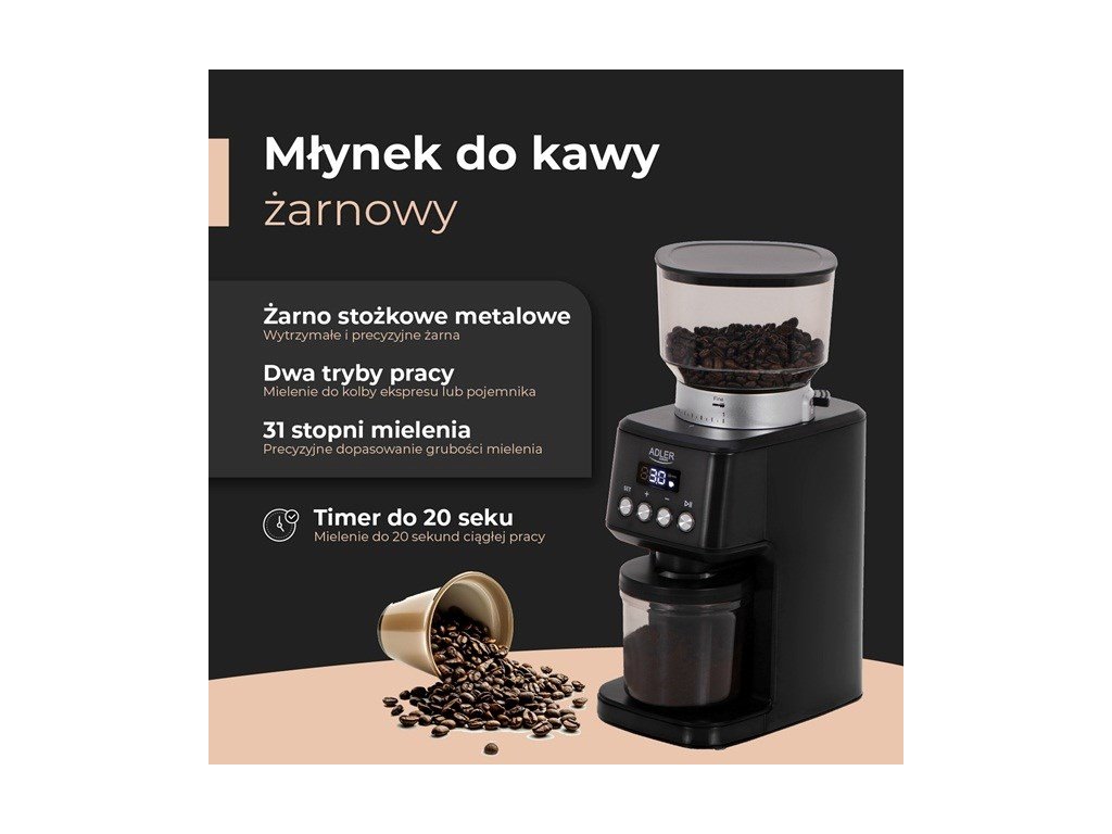 Adler AD 4300 Mlýnek na kávu s mlecími kameny černý