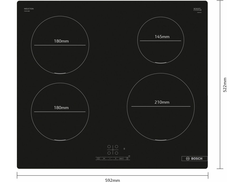 Bosch Serie 4 PUE611BB5E varná deska Černá Vestavěné 60 cm Indukční varná deska se zónami 4 zóna/zón