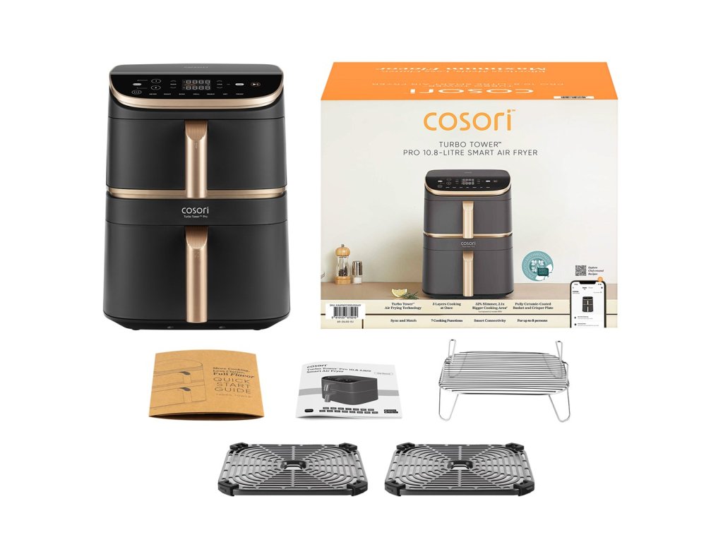 Cosori Turbo Tower Pro Smart Samostarný 10,8 l Samostatné 2630 W Horkovzdušná fritéza Černá, Zlato