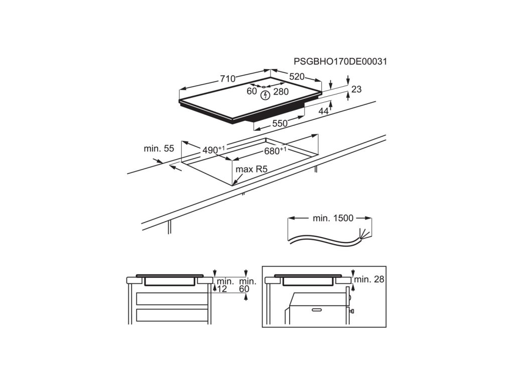 Electrolux EIV734 Černá Vestavěné 68 cm Indukční varná deska se zónami 4 zóna/zón