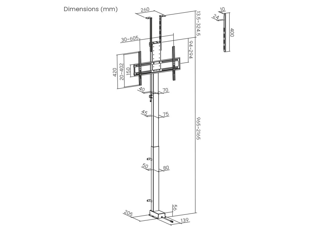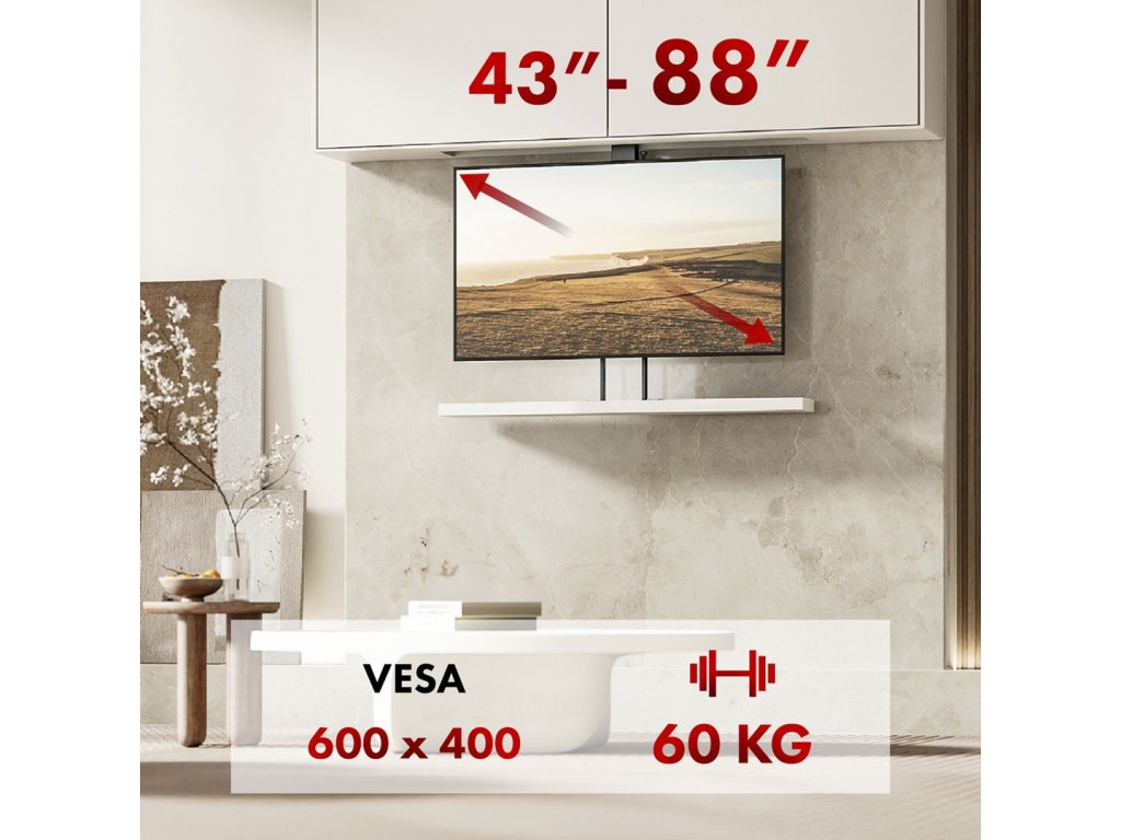 Elektrický stropní a podlahový úchyt, výsuvný Maclean, 43''-88'', VESA 600x400, max. 60 kg, 100-240V AC,50/60Hz