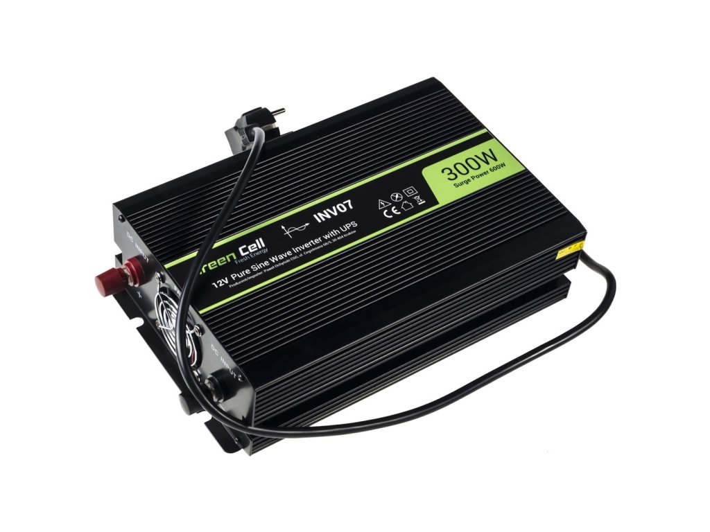 Green Cell INV07 zdroj/transformátor Auto 300 W Černá
