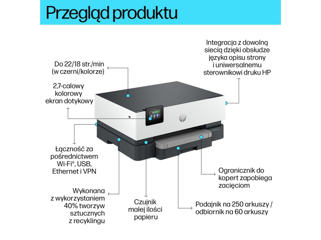 HP OfficeJet Pro 9110b Bezdr. př. Barva Tiskárna, Oboustranný tisk