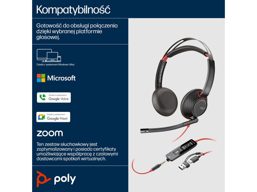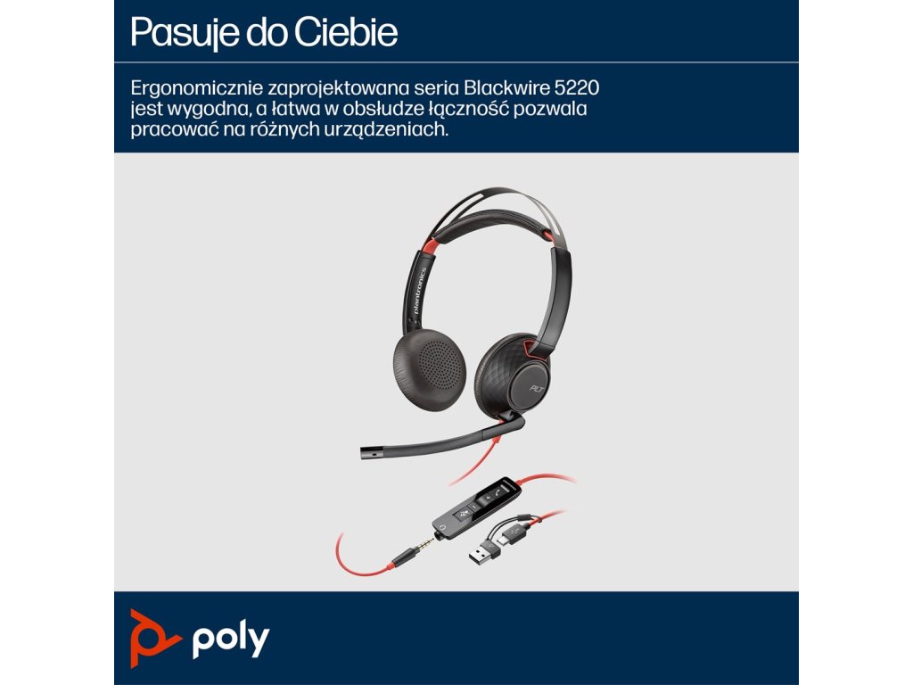 HP Poly Stereofonní náhlavní souprava Poly Blackwire 5220 USB-C + 3,5mm konektor + adaptér USB-C/A