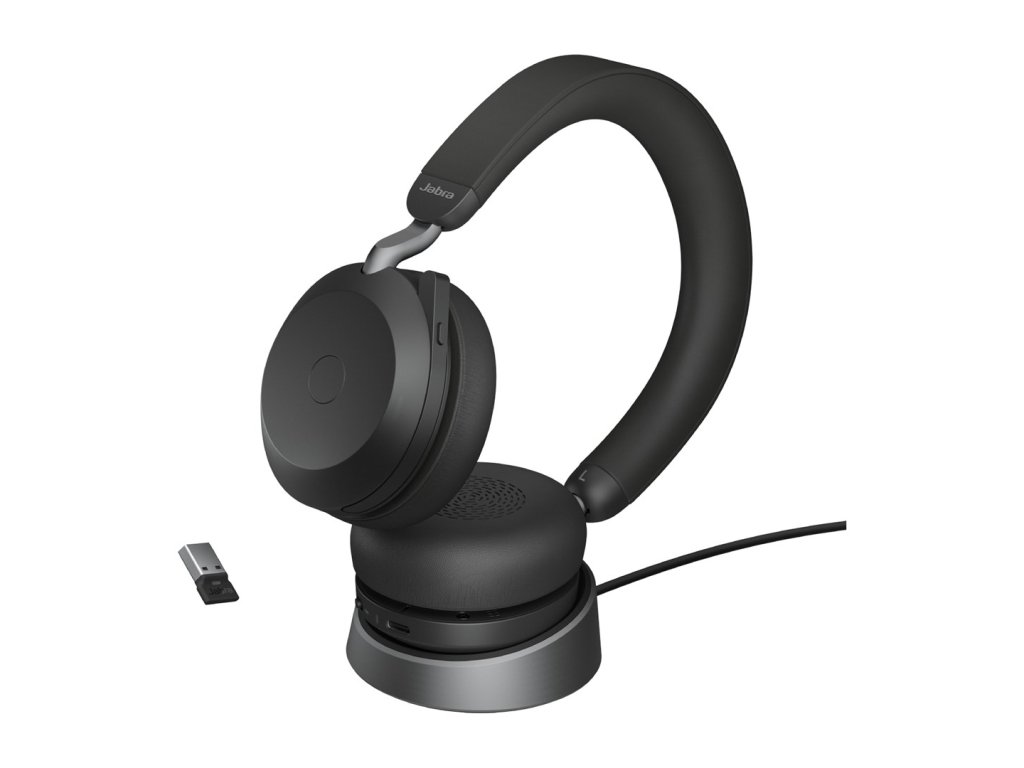 Jabra Evolve2 75 Sluchátka s mikrofonem Kabelový a bezdrátový Přes hlavu Kancelář / call centrum Bluetooth Nabíjecí podstavec Černá
