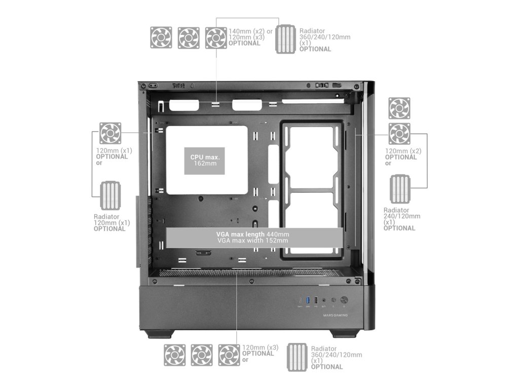 Mars Gaming MCLCDPRO počítačová skříň Midi Tower Černá