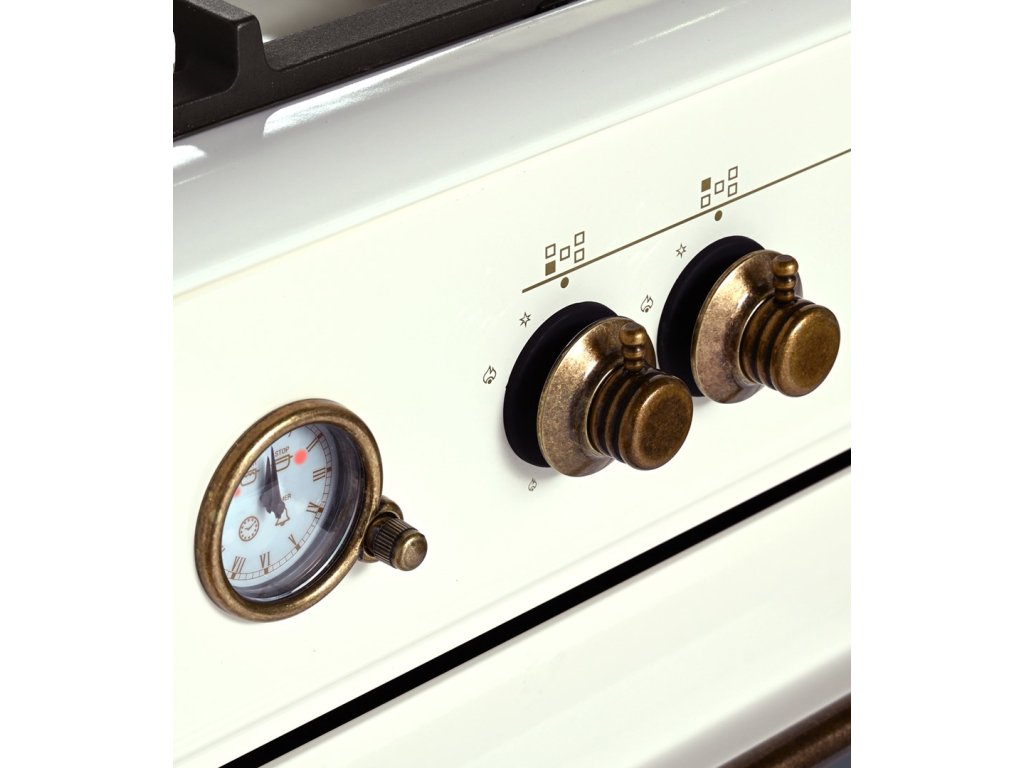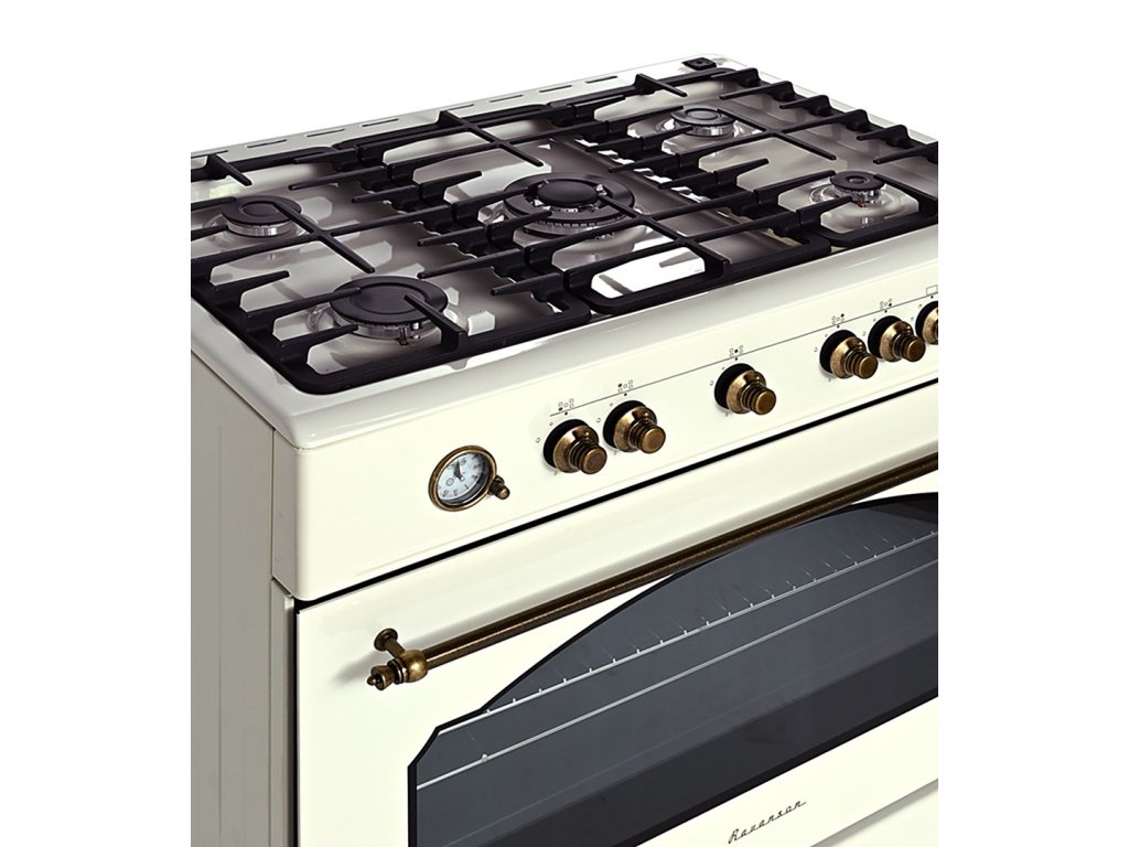 Plynový a elektrický sporák Ravanson Retro KWGE–90ARC (krémový)
