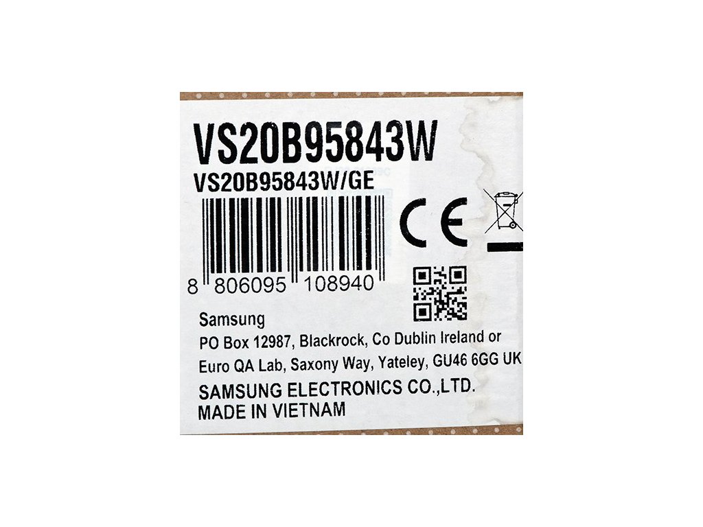 Samsung VS20B95843W ruční vysavač Černá, Chrom, Bílá Prachový sáček