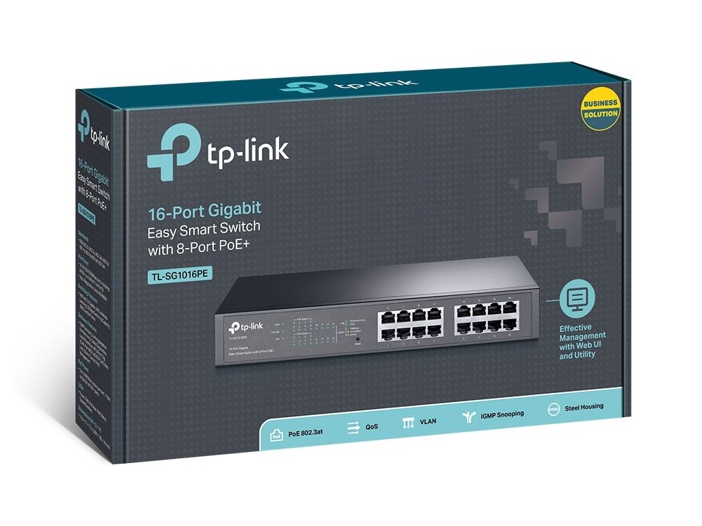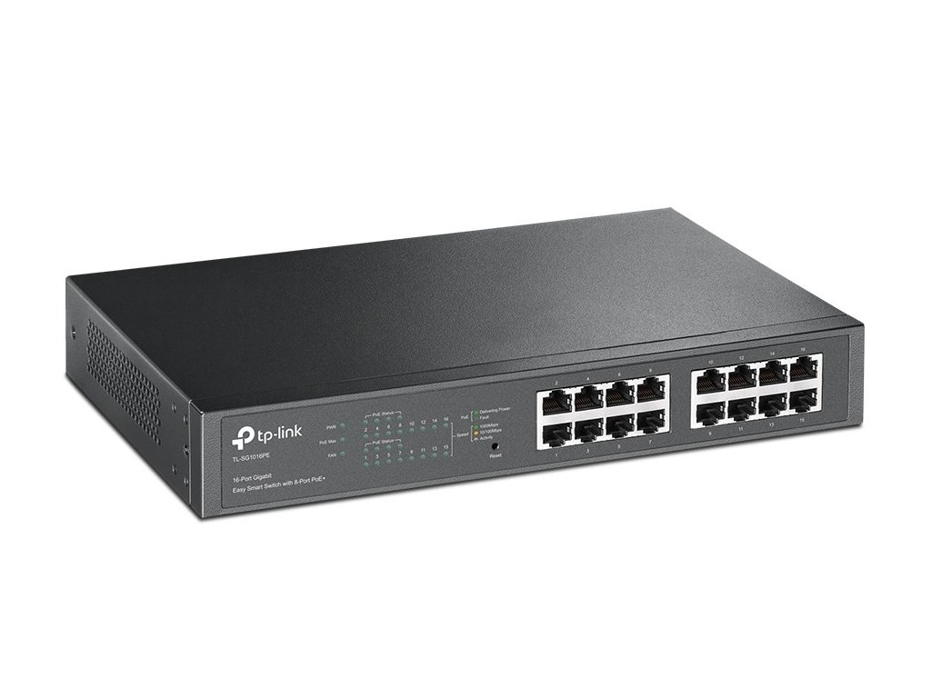 TP-Link TL-SG1016PE Řízený L2 Gigabit Ethernet (10/100/1000) Podpora napájení po Ethernetu (PoE) 1U Černá