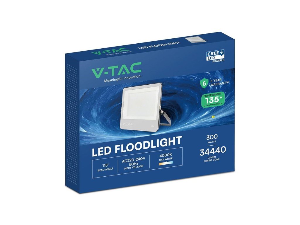 V-TAC 300W LED Floodlight CREE CHIP Black Body Grey Glass 4000K 135lm/W