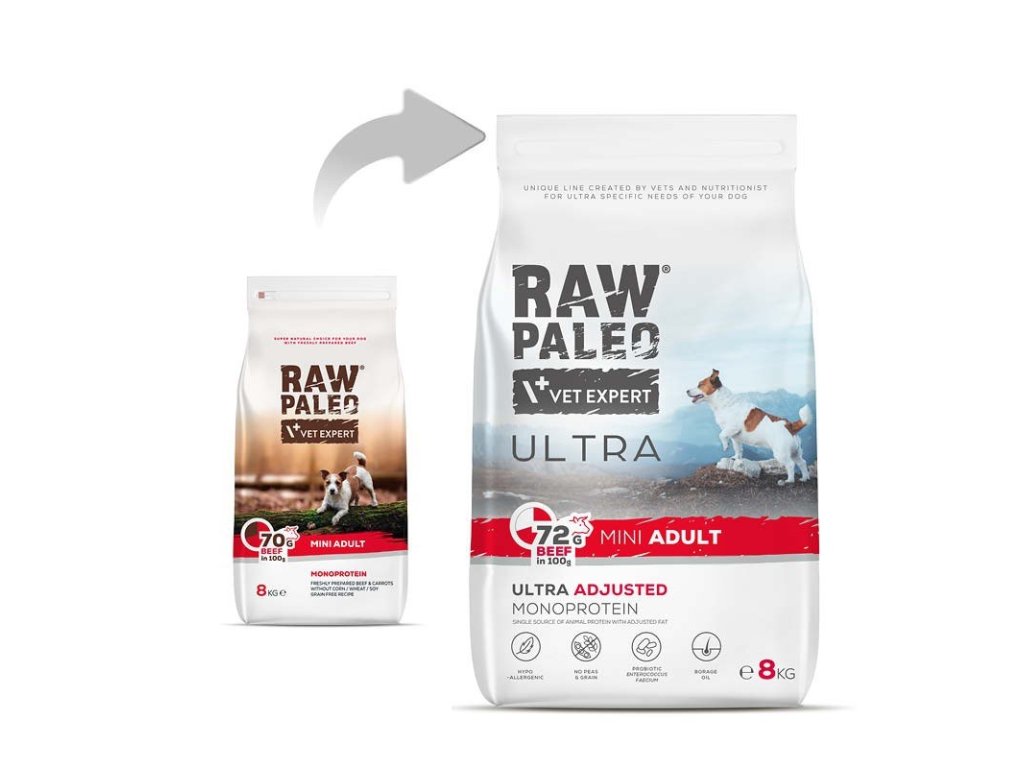VET EXPERT RAW PALEO Ultra Mini Adult Beef - suché krmivo pro psy - 8 kg